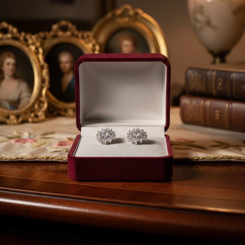 A cluster surrounded by a ring of smaller clusters or individual stones, giving the overall shape a lovely, intricate, and floral appearance.