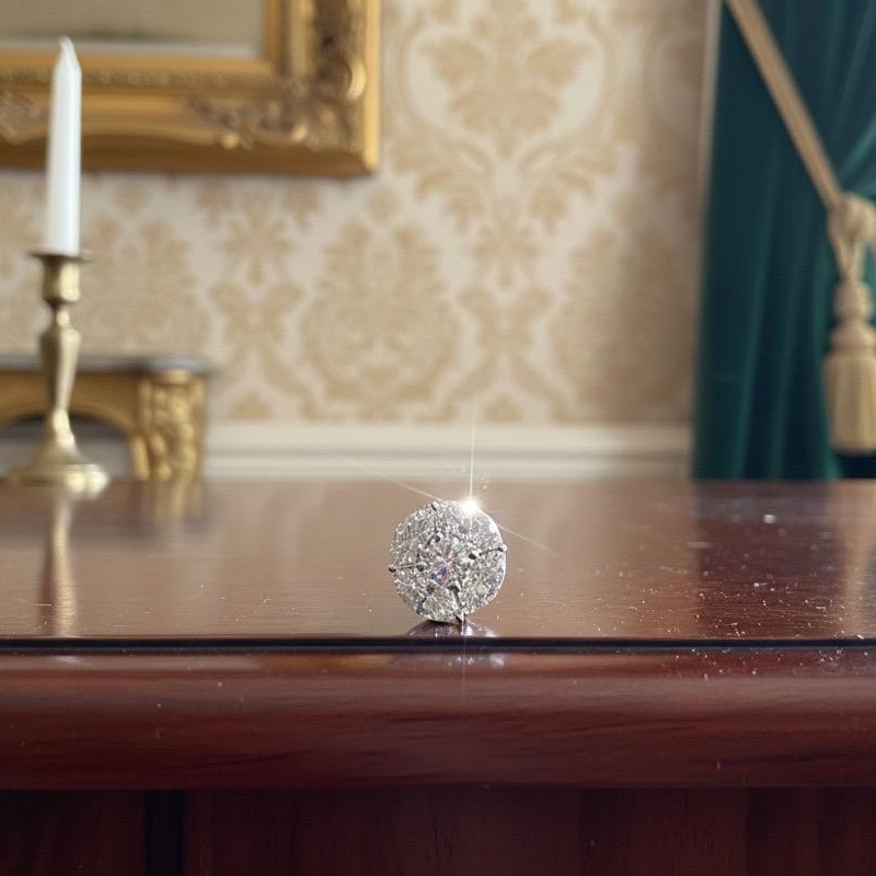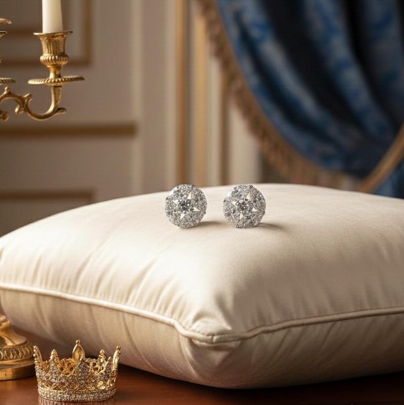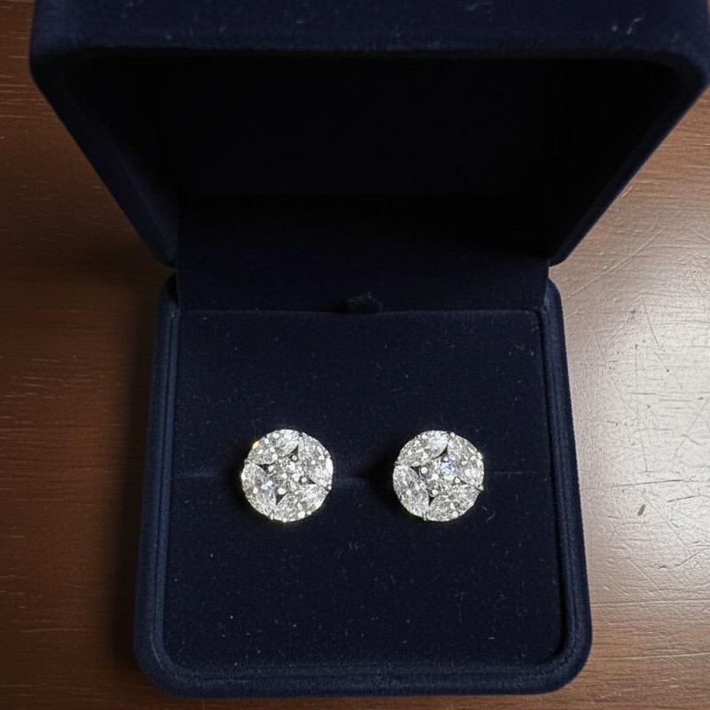 A beautiful pair of diamond or brilliant-cut cluster stud earrings. They’re a classic and versatile design often worn for both everyday elegance and special occasions.