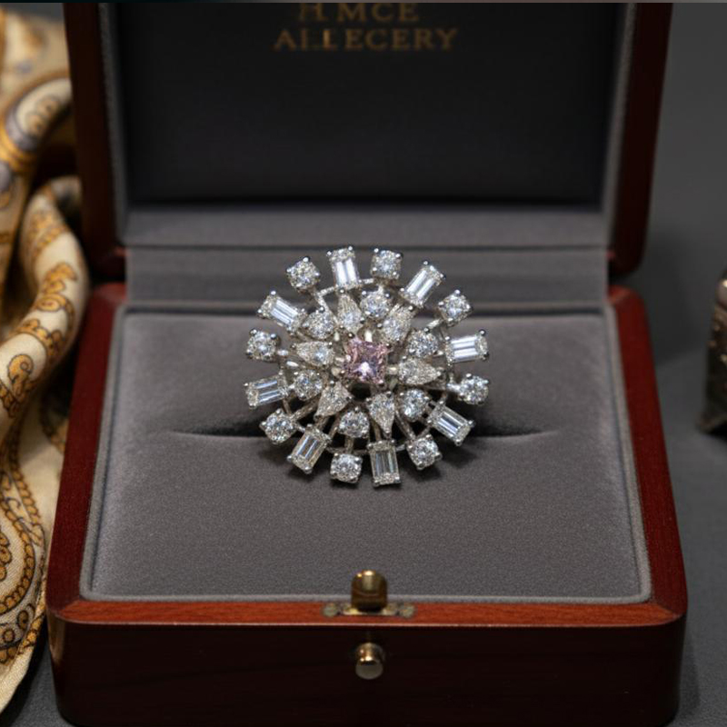 This elegantly crafted cocktail finger ring features a stunning pink stone at its center, radiating charm and sophistication. Its refined design and polished finish make it a standout accessory for both casual and formal occasions.