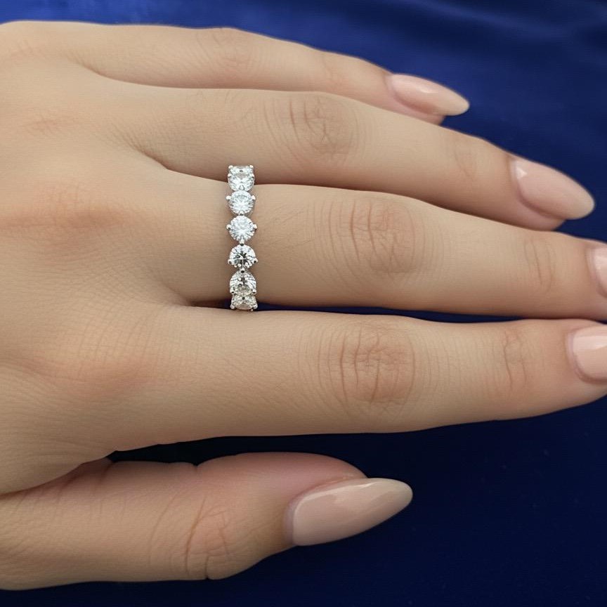 A sleek and perfect band to be worn everyday and look beyond the crowd with a combination of six heart shaped and an oval stone